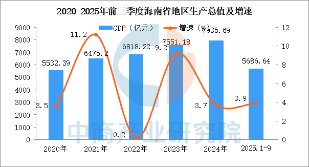 2025年前三季度,全省地区生产总值5686.64亿元,按不变价格计算,同比增长3.9%。分产业看,第一产业增加值1175.56亿元,同比增长5.0%;第二产业增加值995.23亿元,增长3.0%;第三产业增加值3515.85亿元,增长3.8%。三次产业结构比为20.67:17.50:61.83。