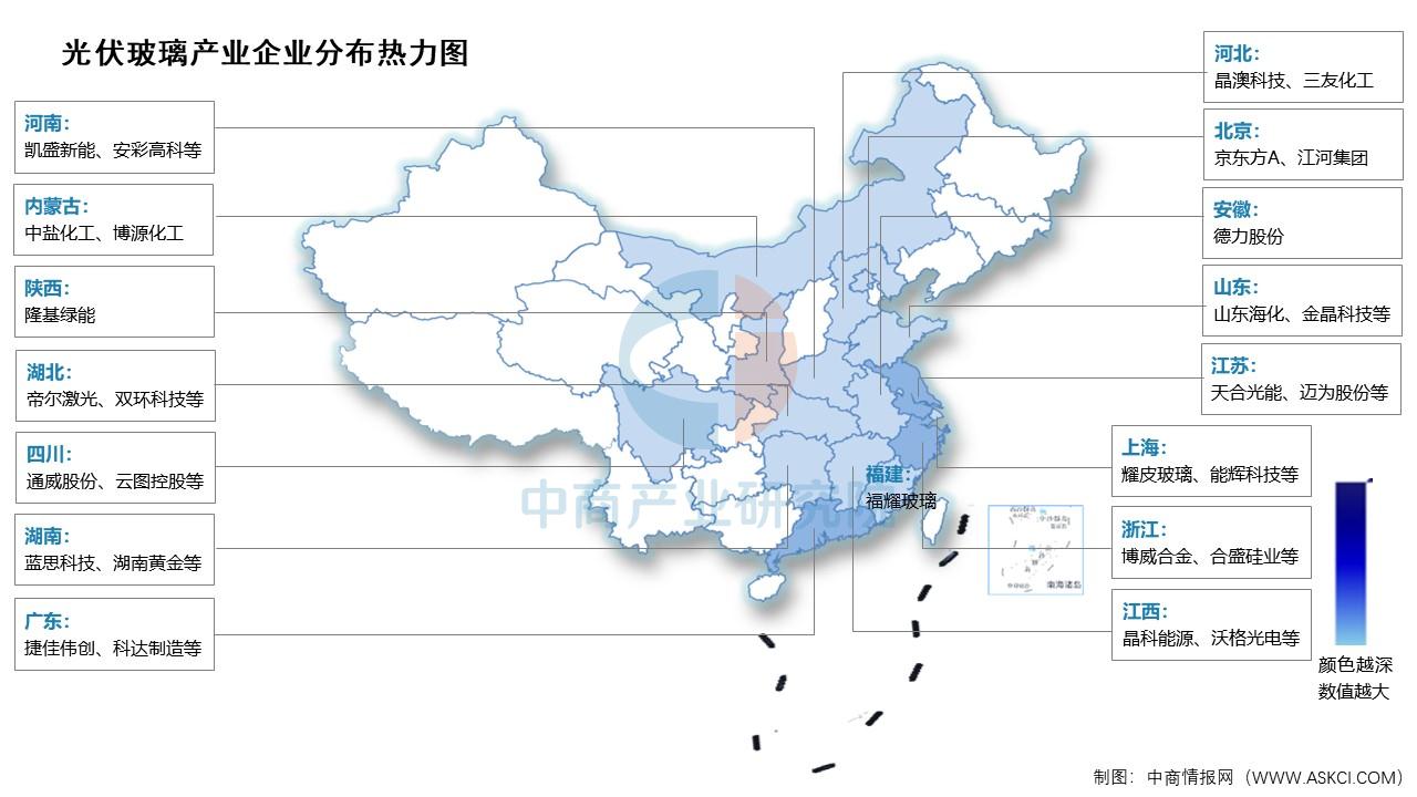 目前,光伏玻璃相关A股上市企业中,江苏省分布最多,共8家。浙江省和广东省均为5家,并列第二。