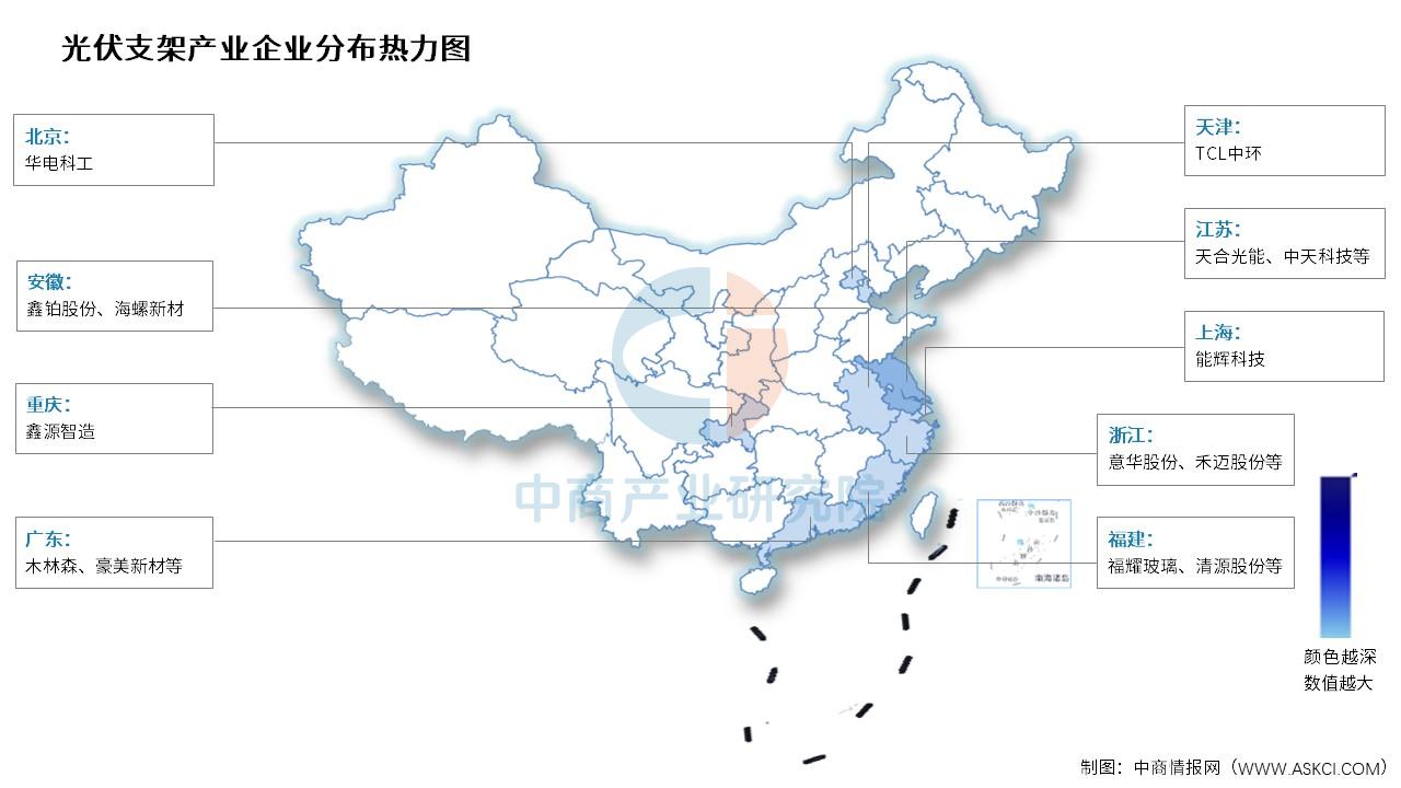 目前,中国光伏支架相关A股上市企业中,江苏省分布最多,共7家。广东省和浙江省分别有4家和3家,排名第二第三。