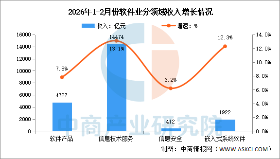 中商情报网讯:2026年前2个月,我国软件和信息技术服务业运行态势良好,软件业务收入稳健增长,利润总额增势放缓,软件业务出口增长较快。