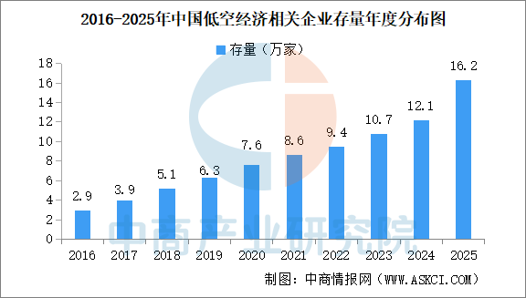 近十年,我国低空经济相关企业存量逐年增加,2023年相关企业存量正式突破10万家,达10.7万家;2025年我国低空经济相关企业存量增速加快,年底在业存续16.2万家低空经济相关企业。截至2026年4月1日,我国现存17.0万家低空经济相关企业。