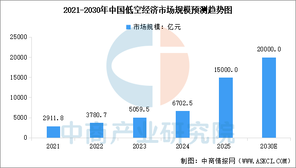 低空经济作为新质生产力的典型代表,正通过“技术-场景-产业”的良性循环,推动经济高质量发展。中商产业研究院发布的《2025-2030年中国低空经济行业市场深度研究及发展前景投资预测分析报告》显示,2025年中国低空经济市场规模已达1.5万亿元,中商产业研究院分析师预测,2030年中国低空经济市场规模将达到2万亿元。
